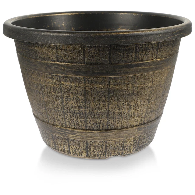 Amazon Com Rustic Wood Look Plastic Half Barrel Flower Pot Patio Lawn Garden