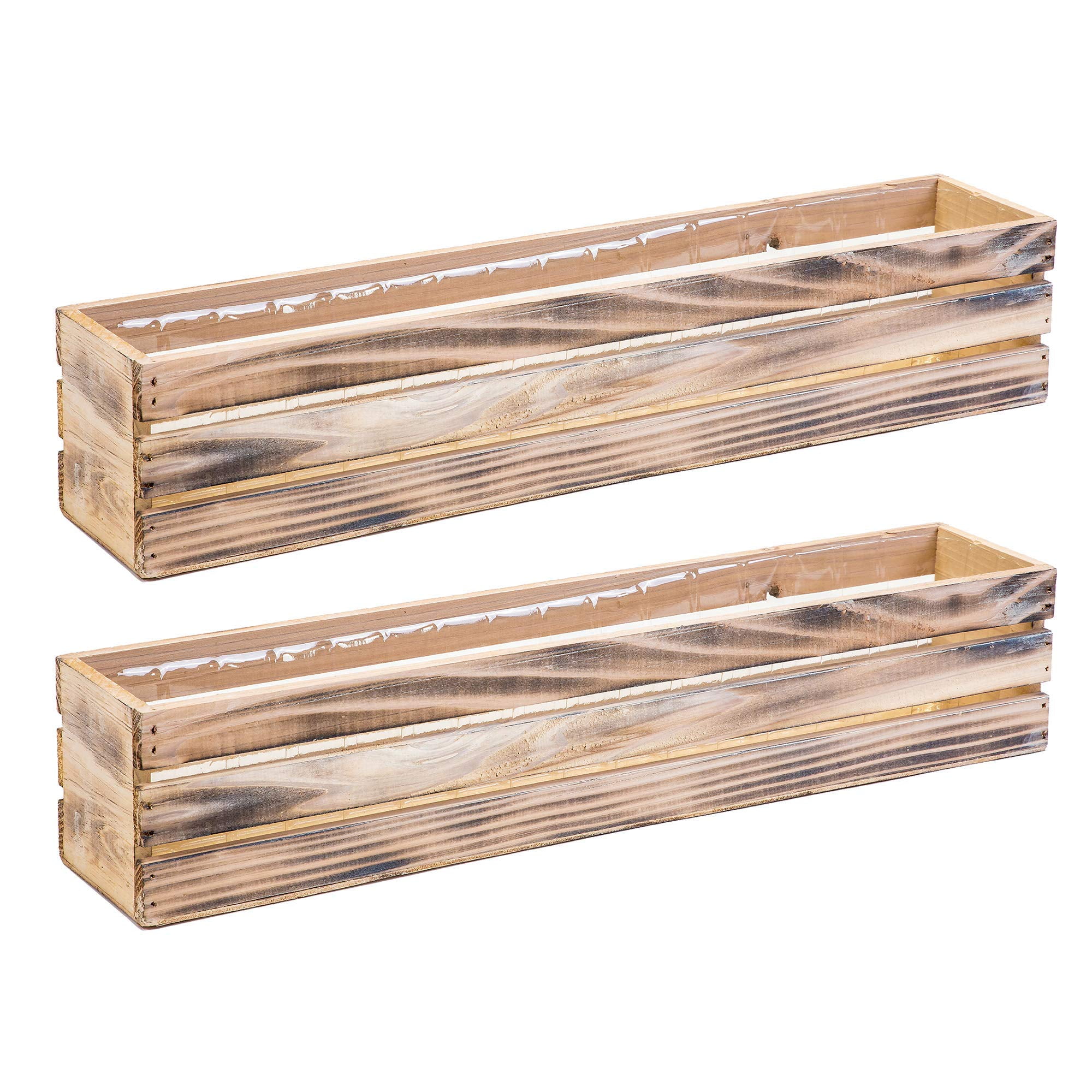 20 Rectangular Rustic Wood Planter With Plastic Liner Wine Crate Style Set Of 2 Rustic Natural Walmart Com
