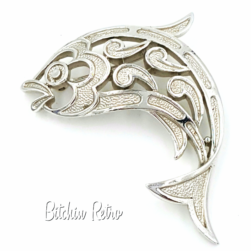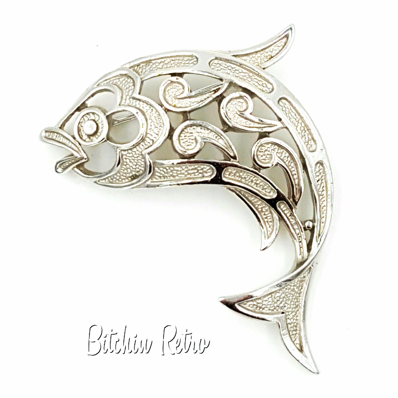 Crown Trifari Brooch Vintage Fish With Paisley Or Mosaic Style Bitchin Retro